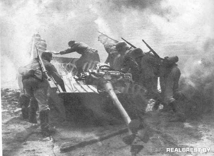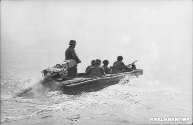 Роковое утро 22 июня 1941 года….3.15 (время немецкое). Земля содрогнулась. Началась артподготовка по сопредельной территории. Л-т Кремерс на исходной позиции со своим штурмовым отрядом. В момент начала водной операции происходит первый форс-мажор. По ошибке в корректировке огня, из-за недолета, немецкая (!) артиллерия бьет по берегу Буга как раз в то место, где водный десант Кремерса ожидает старта и начала операции…Точными попаданиями уничтожено четыре штурмбота, при этом 20 солдат погибли. Первые жертвы. По сути это был уже провал мероприятия, состав его группы уменьшился практически в двое, но упорный лейтенант дает приказ о начале операции и с небольшим опозданием, на пяти лодках выходит в Буг.