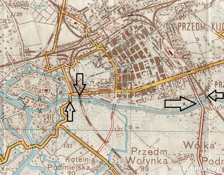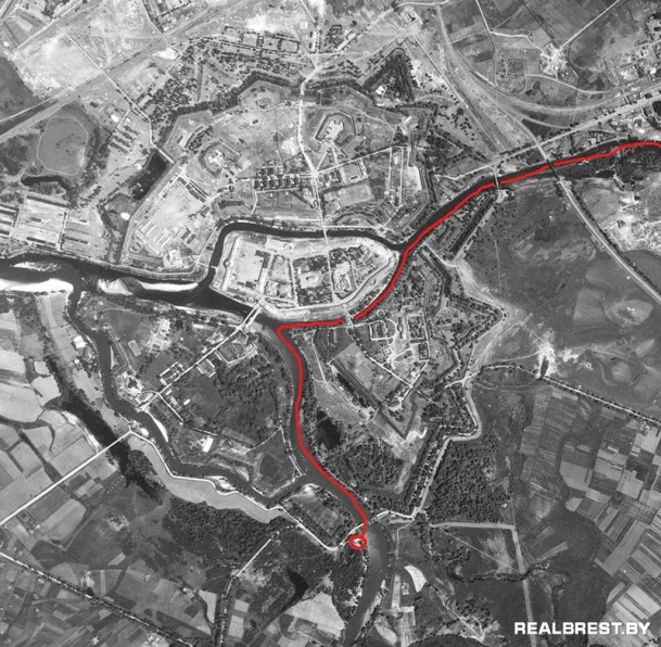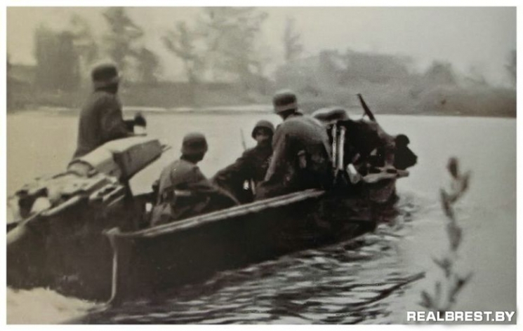Пройдя по течению вниз, группа Кремерса попадает под обстрел со стороны Цитадели, но эти попытки подавляются пулеметным огнем, которой обеспечивали немецкие пулеметчики прикрывая лодочный десант с берега. Пять лодок входят в левый рукав реки Мухавец и подходят к мосту у Холмских ворот, где их ждала вторая неприятность…. До сих пор не понятно, как немецкая разведка не усмотрела каменную дамбу возле этого моста, но для Кремерса и его группы, это была полная неожиданность.