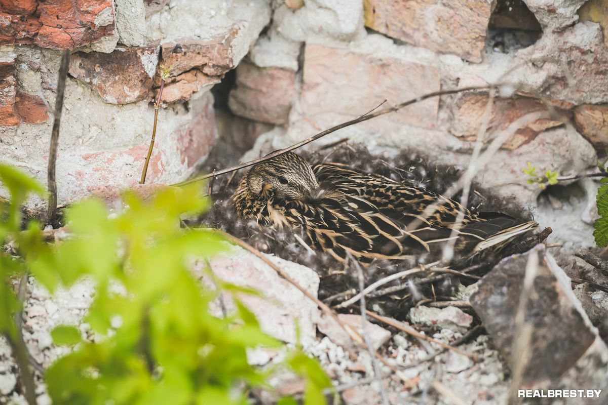 Во время работ волонтеры обнаружили утку, которая гнездилась здесь.