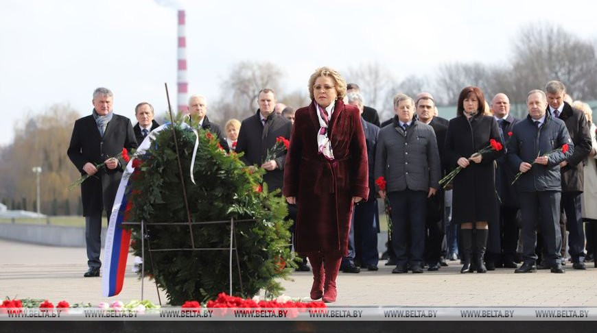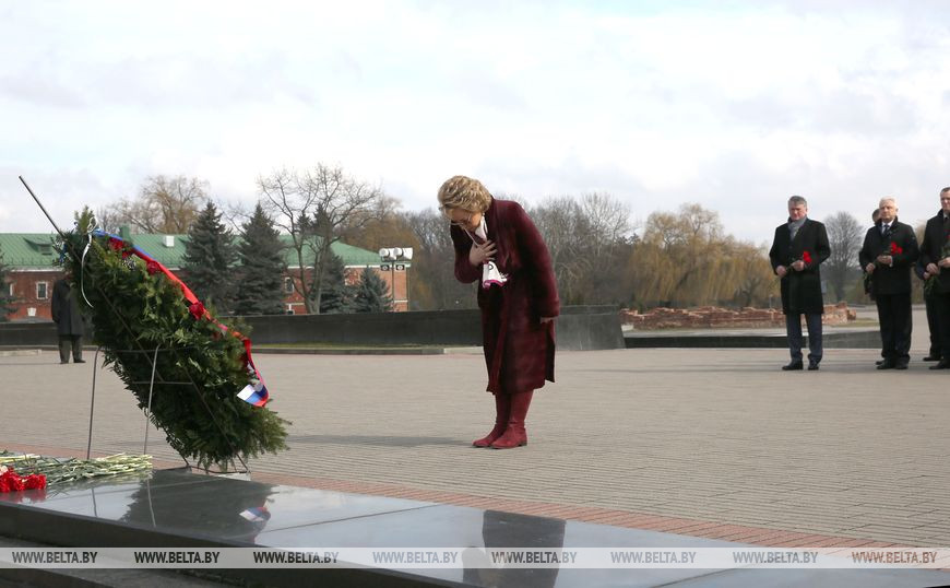 Парламентская делегация России во главе с председателем Совета Федерации сегодня после полудня прибыла в мемориальный комплекс "Брестская крепость - герой". Коллег сопровождают белорусские парламентарии во главе с председателем Совета Республики Натальей Кочановой. К Вечному огню мемориала гости возложили венок и цветы.