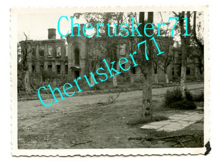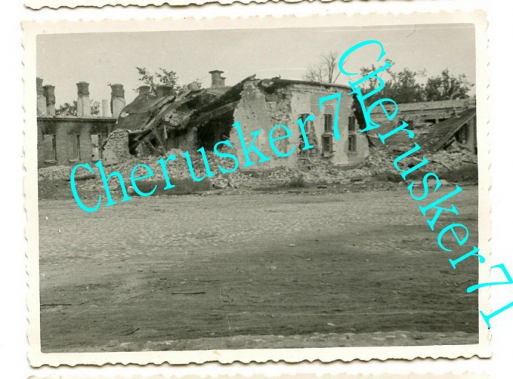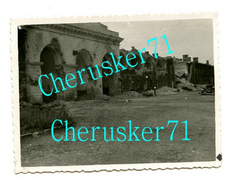 3. Руины комендантского дома (крепостное инженерное управление, иезуитский коллегиум). На переднем плане воронка, а на заднем телега. Не на ней ли труппы в одну из воронок свозились?