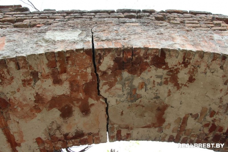 Кроме этого мы обнаружили опасность обрушения арки на фасаде северной стены монастыря, о чём свидетельствуют угрожающие трещины, появившиеся посередине арки и в левой её части. Чтобы не было беды, надо срочно закрыть проход под ней и оперативно поставить подпорки под левую часть арки.
