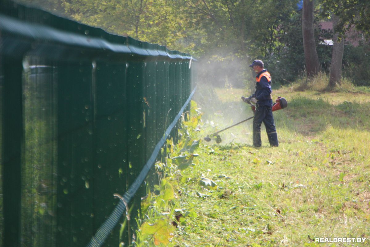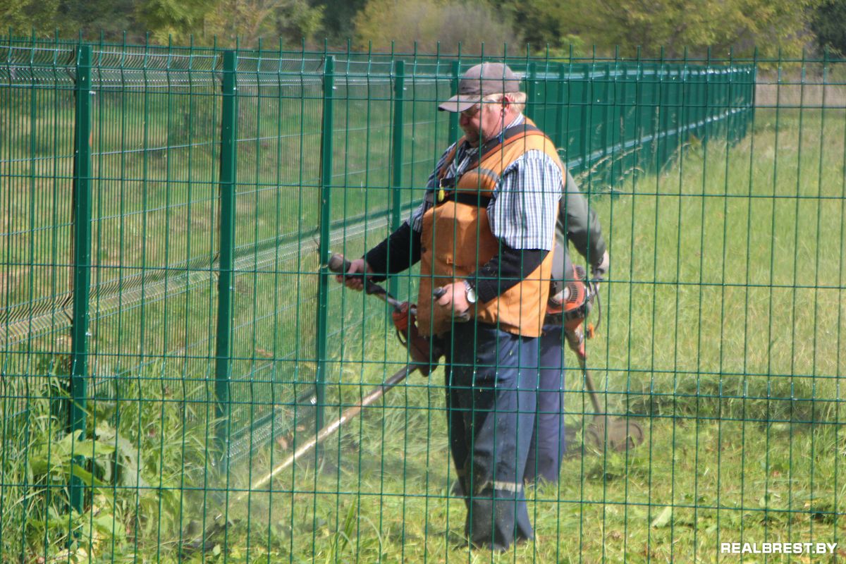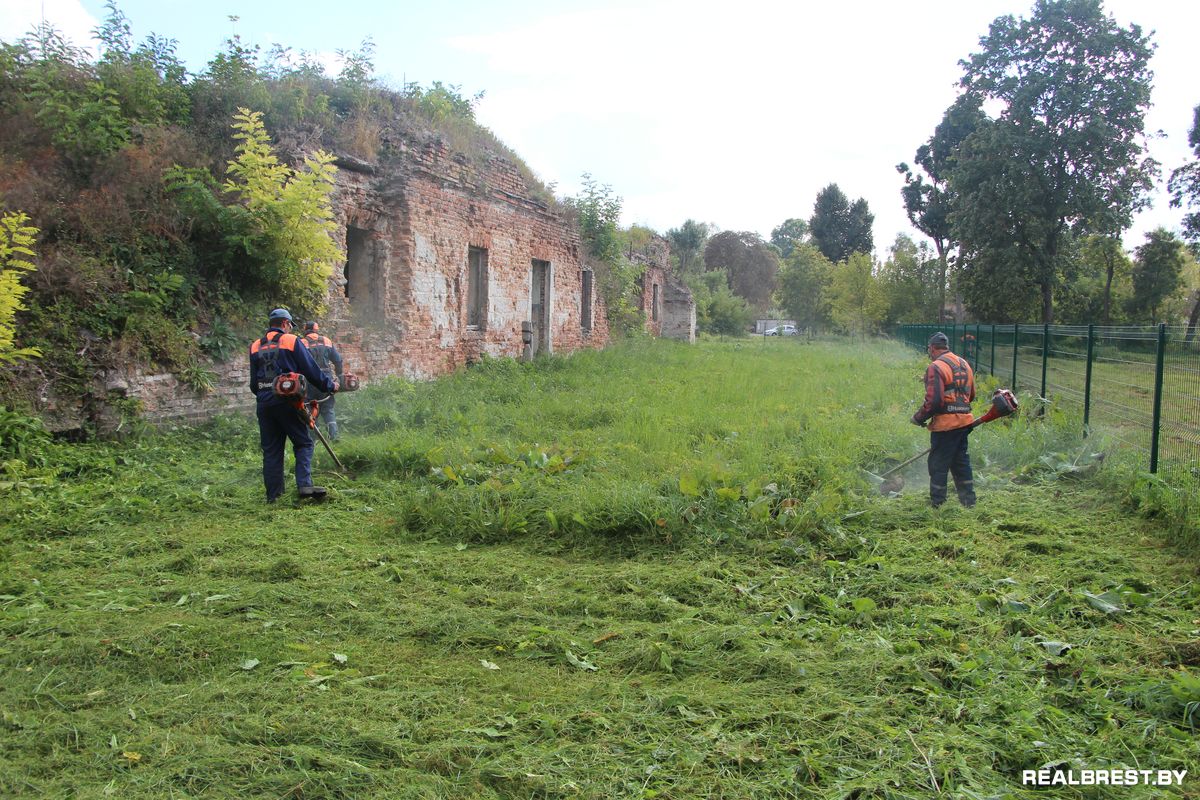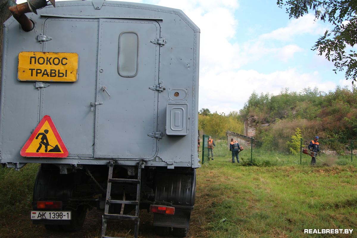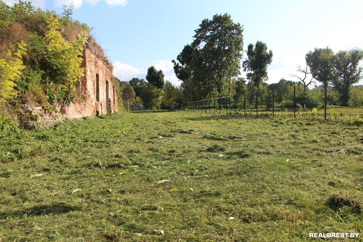 Сегодня коммунальные службы покосили траву во внутреннем дворе Бернардинского монастыря и вдоль забора.
