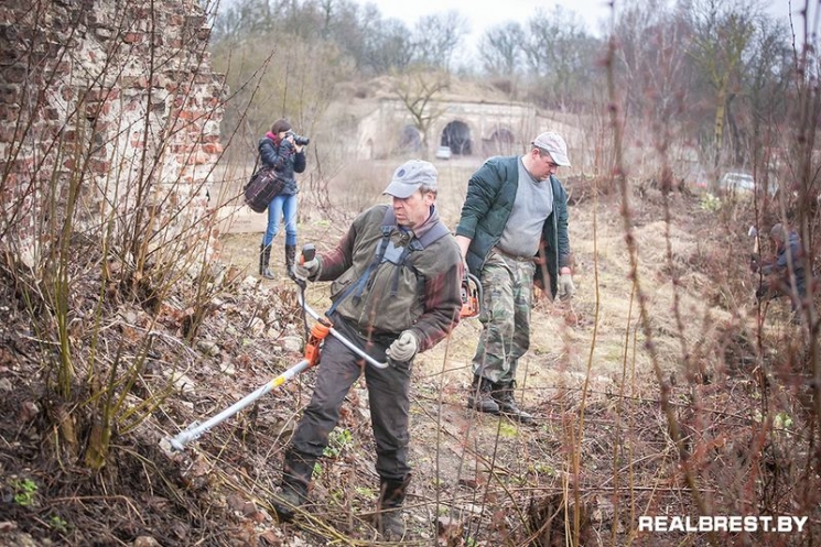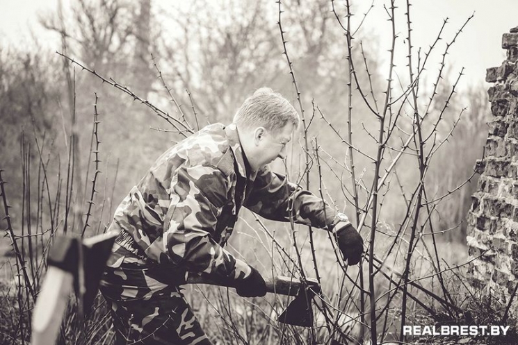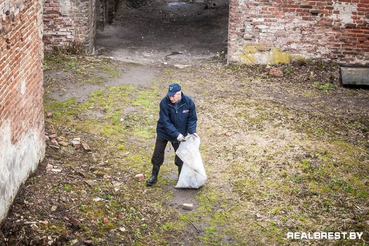 Дружная компания от Реального Бреста, собранная за несколько лет трудов на руинах, в этот раз увеличилась, благодаря подключению к этому благородному делу работников Брестского горисполкома. В дождливую погоду на субботник вышел весь руководящий аппарат во главе с его председателем Александром Степановичем Рогачуком.