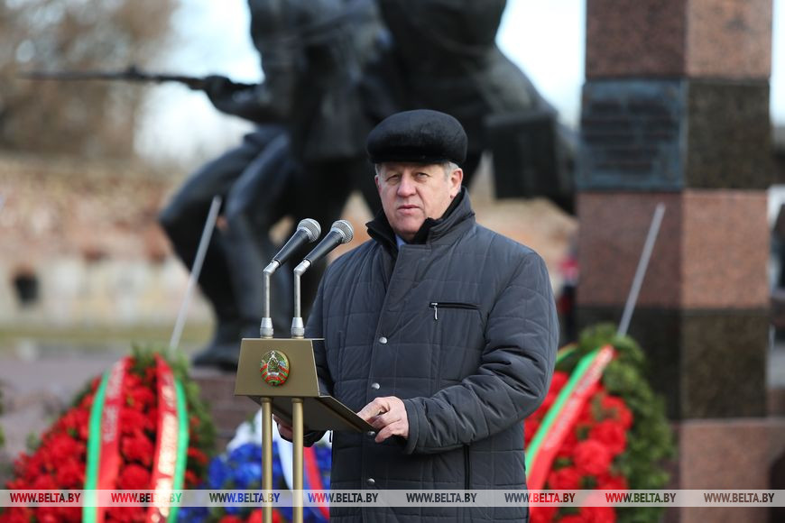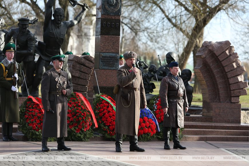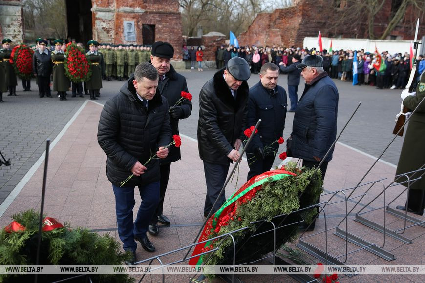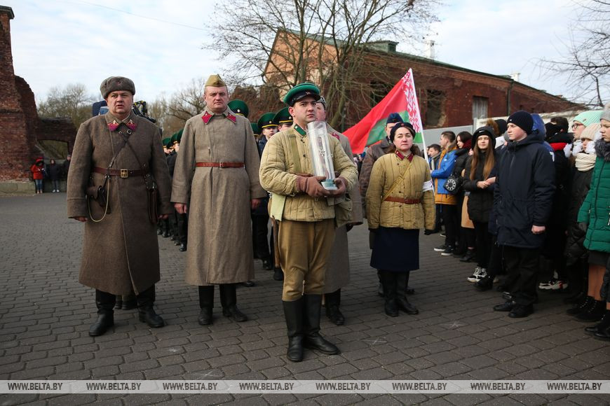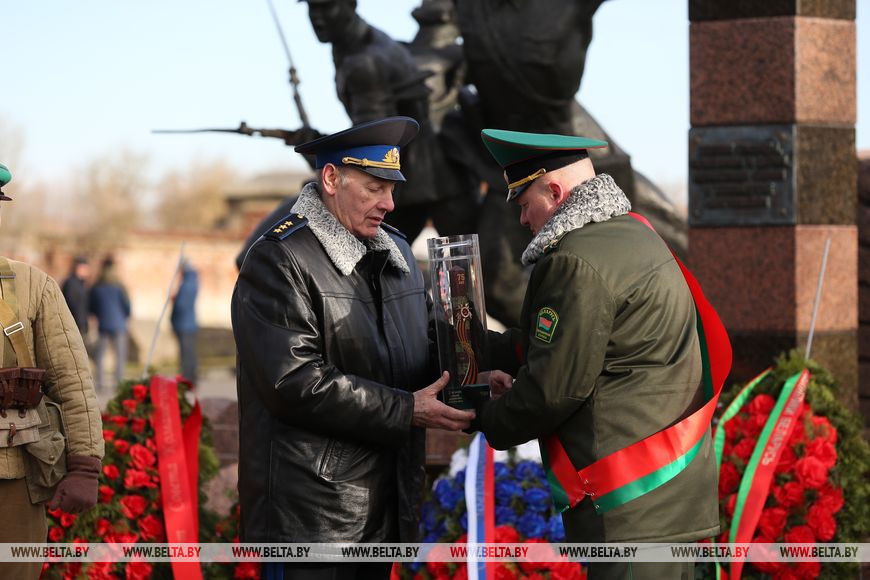 Местом старта эстафеты Брест выбран не случайно. Председатель облисполкома Анатолий Лис обратил внимание, что первыми в июне 1941 года в бой с захватчиками вступили воины 17-го Краснознаменного Брестского пограничного отряда. Многие их них погибли в первые дни войны. Собравшиеся у скульптурной композиции "Героям границы, женщинам и детям, мужеством своим в бессмертие шагнувшим" возложили венки к мемориалу, почтили память погибших в годы войны защитников.
