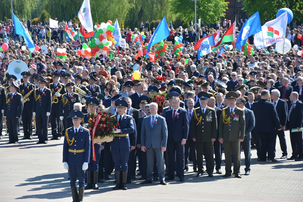 В 10 часов к Брестской крепости прошло шествие руководства области и города, ветеранов, военнослужащих Брестского гарнизона, актива общественных организаций и участников акции «Беларусь помнит!».