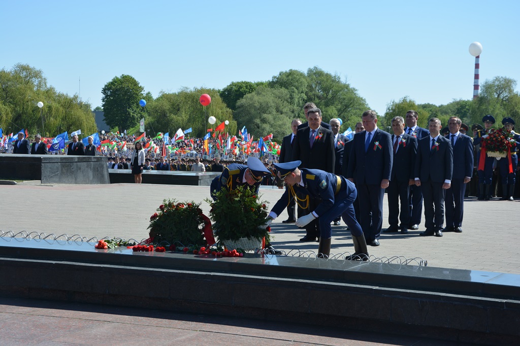 На площади Церемониалов состоялись митинг и возложение цветов и венков к Вечному огню и к плитам мемориала.
