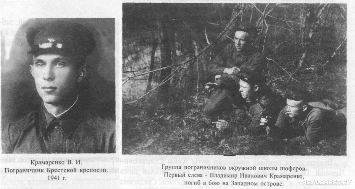 КРАМАРЕНКО Владимир Иванович, 1921 г.р., г. Харьков. Призван в 1940 г. из г. Харьков, рядовой, курсант внештатных Окружных курсов подготовки водителей строевых и транспортных машин ПВ НКВД БССР (т.н. «курсов шоферов» БПО), располагавшихся на Тереспольском укреплении БК. Учтен погибшим в июне 1941г.