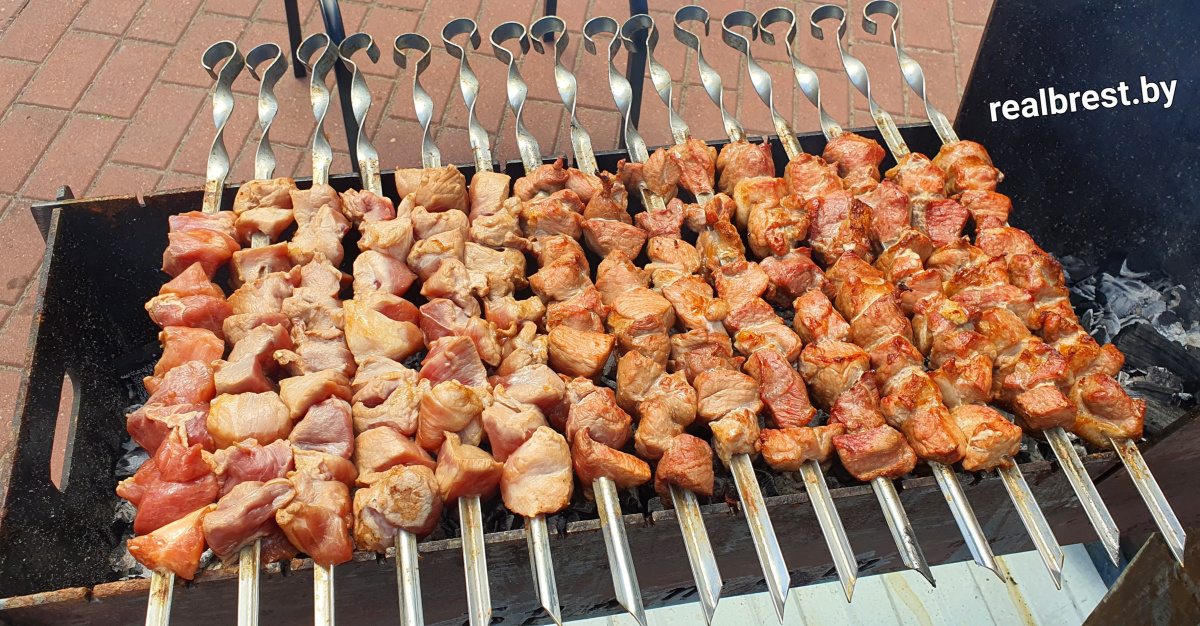 «Реальный Брест» узнал, что самый дешевый из свинины за 100 грамм стоил 4 рубля 20 копеек, а самый дорогой 5 рублей 50 копеек, еще был из курицы за 7 рублей (возможно, это ошибка, ибо встречался из курицы шашлык и за 3 рубля 80 копеек), а также колбаски 2,40 – 2,50 рубля соответственно за 100 грамм.