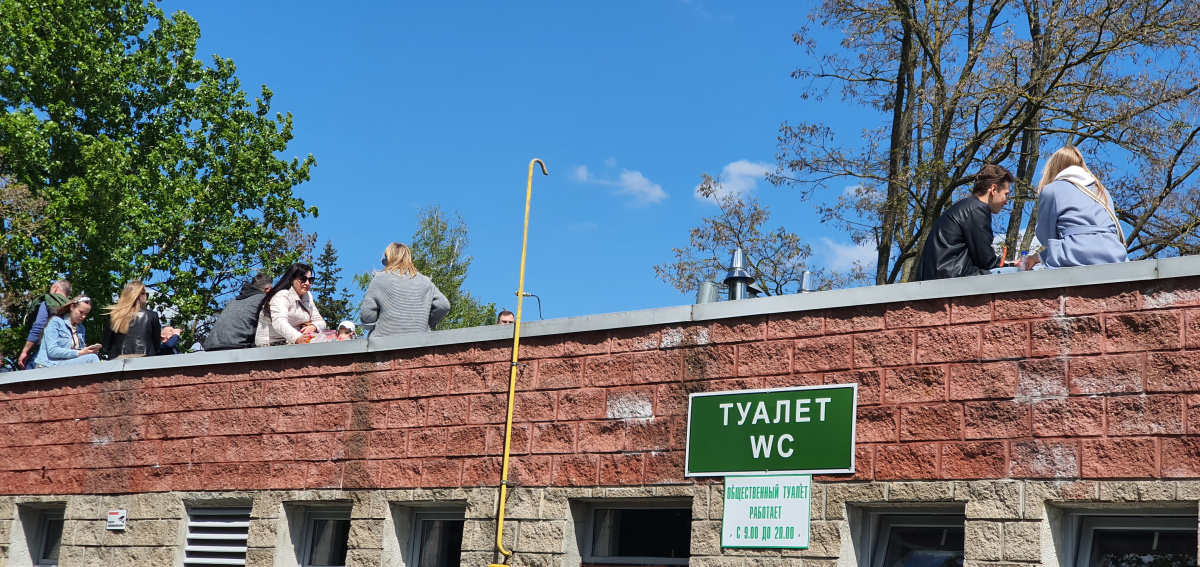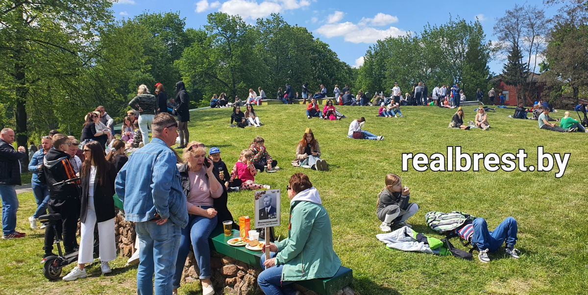 Сегодня в Брестской крепости многолюдно и не всем хватает мест на летних площадках, организованных вблизи торговых объектов, осуществляющих продажу прохладительных напитков и горячего шашлыка.