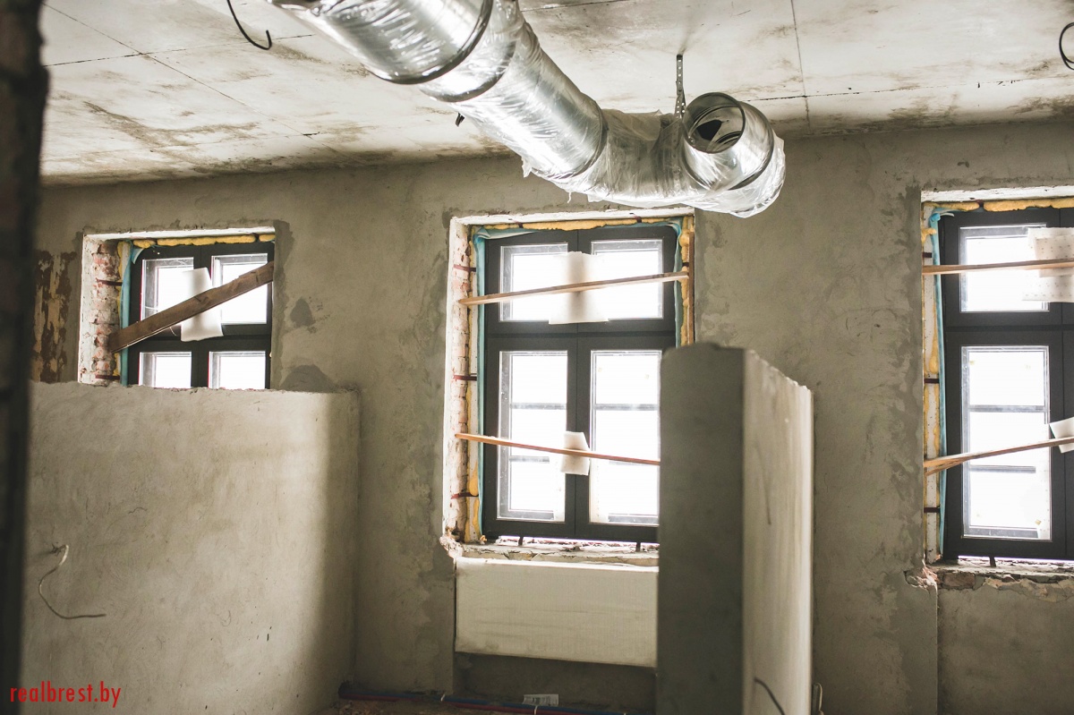 «Реальный Брест», чтобы освежить тему, заглянул во многочисленные помещения молодежного патриотического центра «БРСМ», где уже проведены основные коммуникаций, установлено отопительное оборудование, пластиковые окна, а в ближайшее время установят подоконники и зальют стяжку.