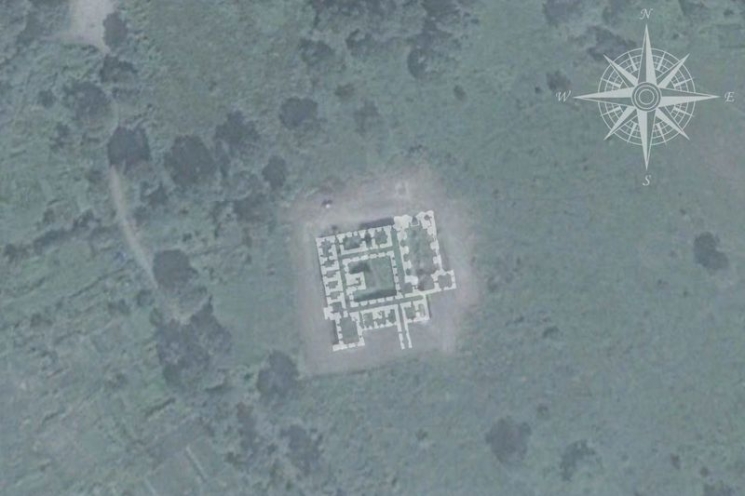 39. Можно в разрезе наблюдать перекрытия между этажами. За многие годы наверх нанесло примерно полметра земли, из которой растут трава и деревья.