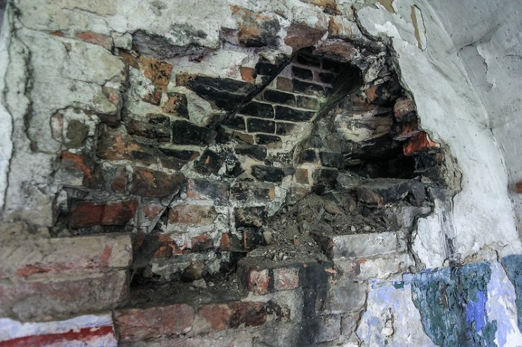31. Из разрушающейся кладки выступили чугунные стяжки.