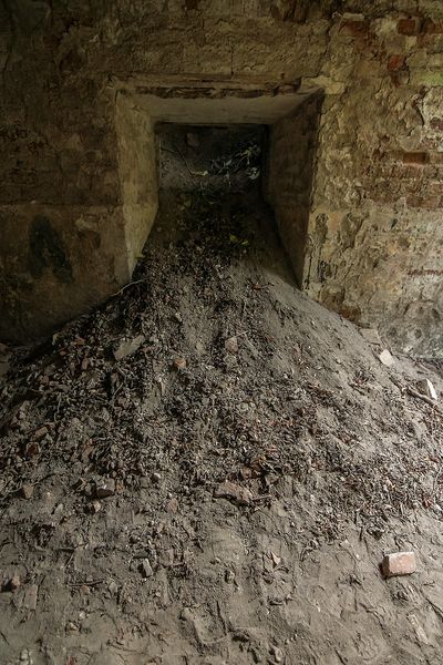 28. Один из проёмов полностью засыпан землёй и кирпичами разрушенных стен.