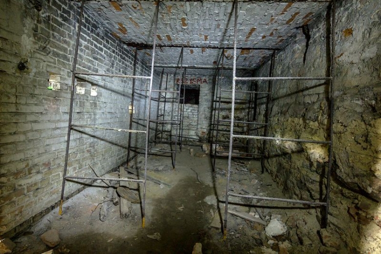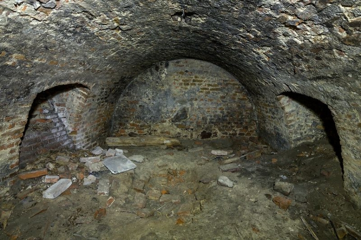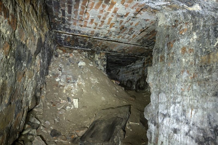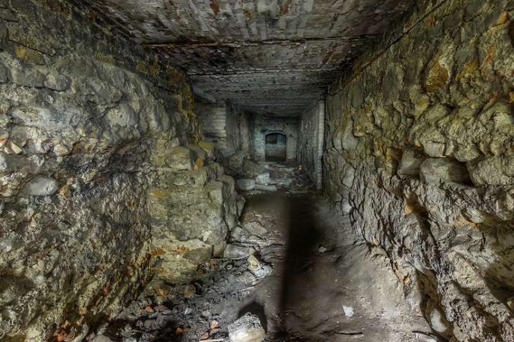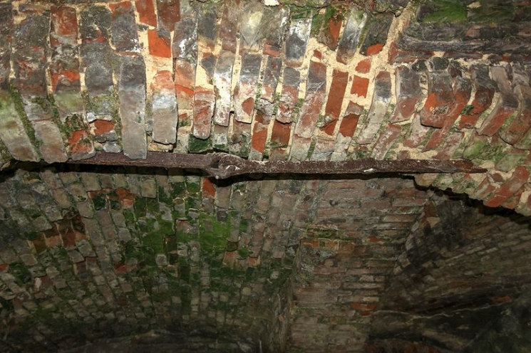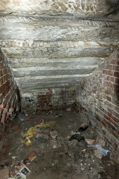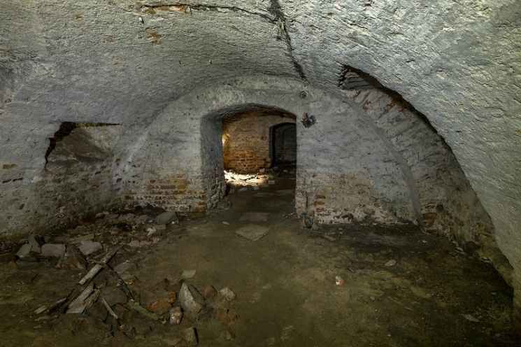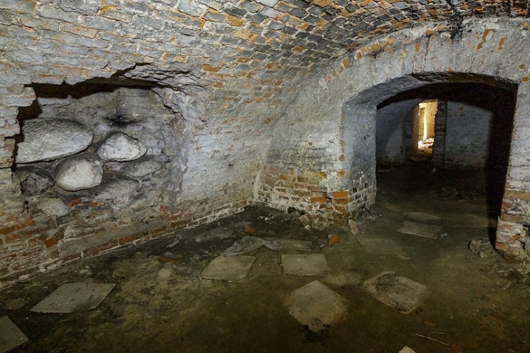 45. Изначально подвал был не под всем зданием. В XX веке в бутовом фундаменте были пробиты проходы, из стальных балок и кирпичей сделано перекрытие потолка.
