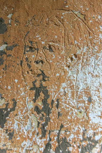 36. В одном из дверных проёмов обнаружился нацарапанный на штукатурке портрет. Скорее всего, изображение относится к 1-й половине XX века.
