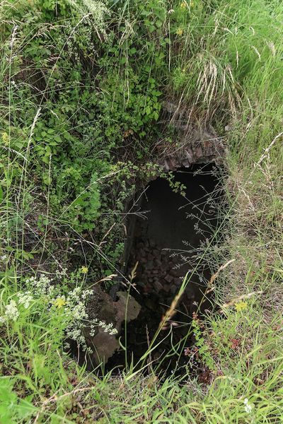 47. Спуск в подвал из здания настолько завален землёй и осколками кирпичей, что к нему близко не подойти.