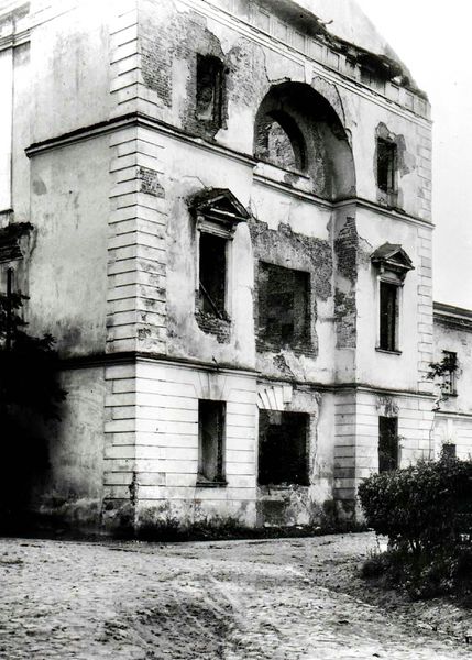 9. В дальнейшем сильнее всего здание женского монастыря пострадало в 1915 году при отступлении русских войск из Брест-Литовска (ниже представлено немецкое фото 1915 года). Помещение костёла полностью выгорело внутри вплоть до кирпичных стен. Это повлекло за собой дальнейшее разрушение, и где-то в период между 1920 и 1939 годами руины были снесены польскими сапёрами, а келейный корпус был приспособлен под столовую.
