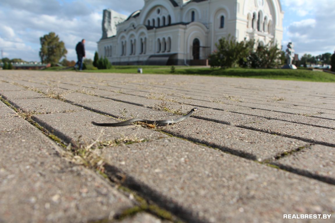 Взрослый уж может достигать в длину до метра, однако существуют и полутораметровые особи. Нам же в Брестской крепости повстречался маленький экземпляр.