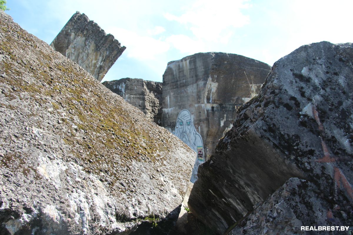 Одни утверждают, что это развалины порохового погреба №4 оборонительного пояса Брестской крепости в деревне Аркадия, другие - развалины порохового погреба напротив участка кольцевой казармы 44-го стрелкового полка - через рукав Мухавца на территории Кобринского укрепления.