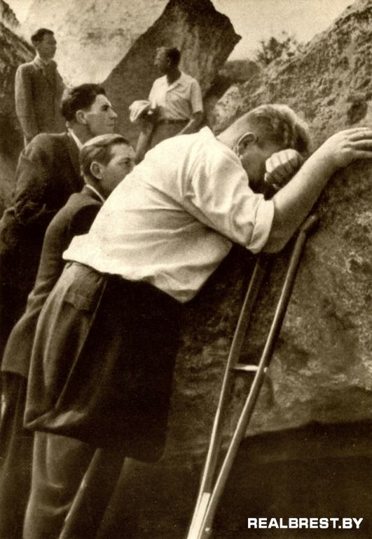 Фотокорреспондент Михаил Ананьин, бывший партизан, и сам потерял на войне стопу. Ему лучше чем кому бы то ни было понятны чувства человека на костыле, приникшего к бетонной руине...