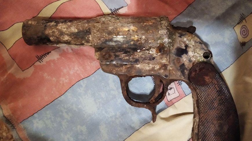 Предварительно, находкой оказался немецкий сигнальный пистолет Walther Leuchtpistole 1934 года выпуска. Оружие изъято, проводится проверка.