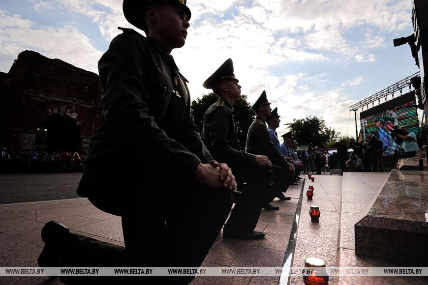 В Брестской крепости сегодня в шестой раз прошла акция "Боевой расчет". Ежегодно 21 июня в 19.00 Институт пограничной службы проводит патриотическую акцию "Боевой расчет" у Тереспольских ворот мемориального комплекса "Брестская крепость-герой".