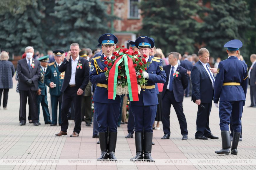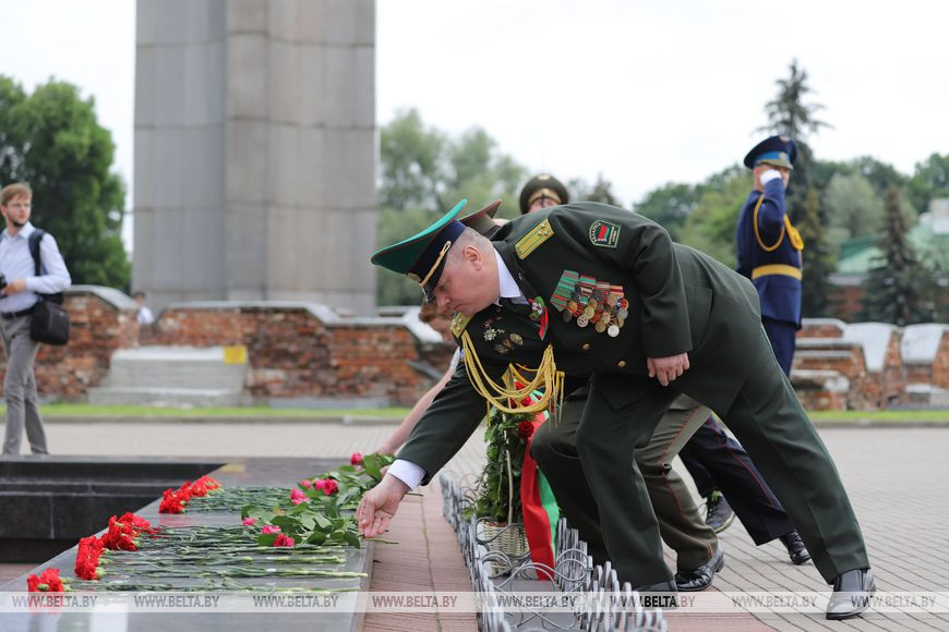 В мемориальном комплексе "Брестская крепость - герой" сегодня состоялось торжественное возложение венков у вечного огня на площади церемониалов.