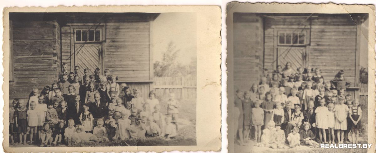 В период оккупации 41-44 гг. в правом крыле школы, если смотреть от главного входа, располагался полицейский участок, а в левом крыле была конюшня.