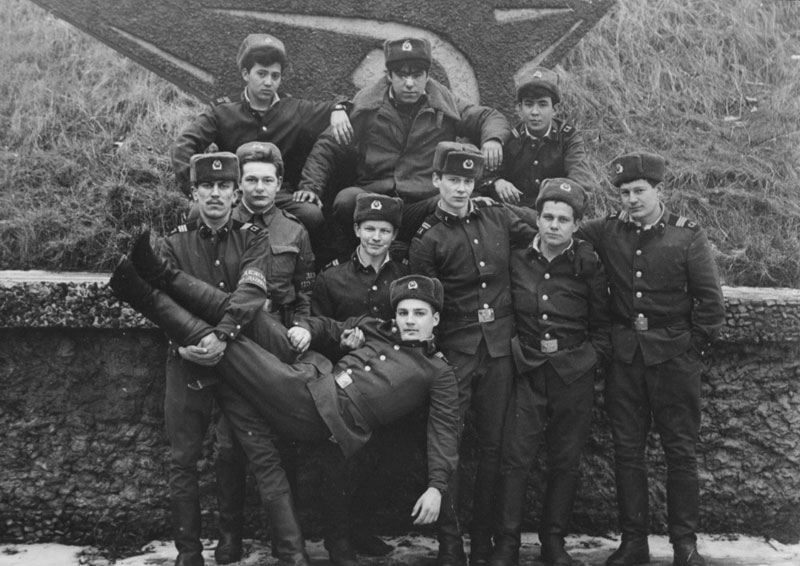 Тут-же, на территории бывшей части находятся остатки еще одного памятника, в виде бетонного постамента. Что на нем было, до определенного момента было неизвестно, пока не появился "дембельский" снимок, давая ответ на этот вопрос.