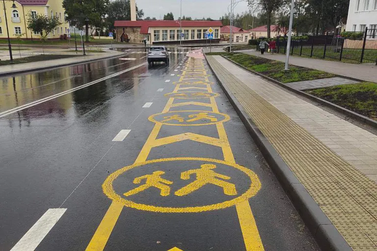 В Заславле на дорогах появилась уникальная разметка, такой нет даже в Минске. Подробности сообщает Белоруссий дорожный инженерно-технический центр.