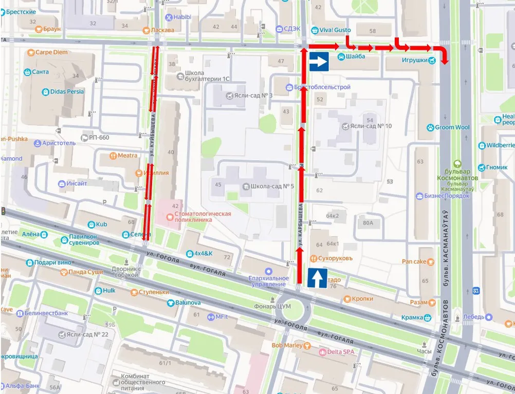 3. Улица Карбышева (от ул. Гоголя до ул. Маяковского) - также будет организовано одностороннее движение, но в направлении Центрального рынка.