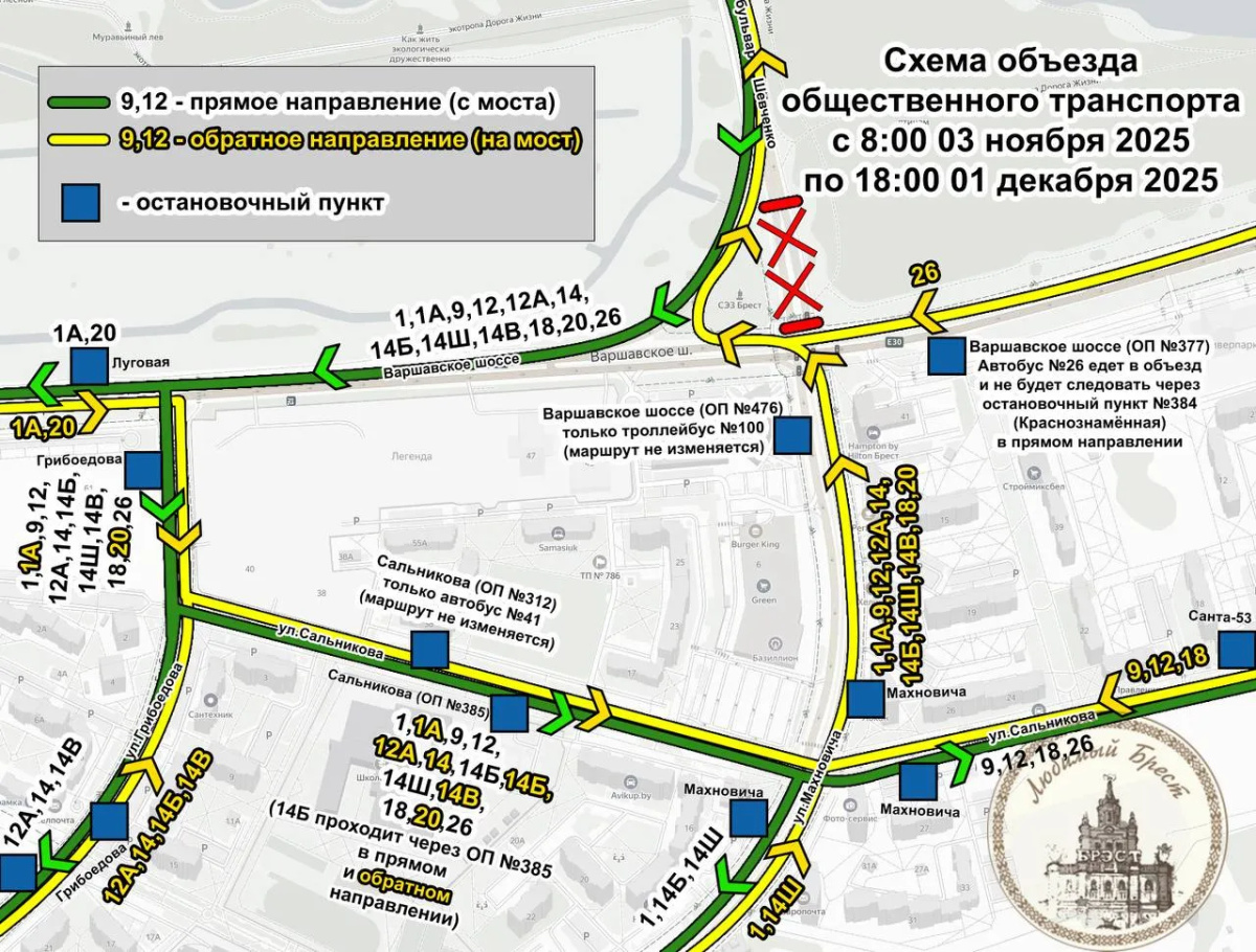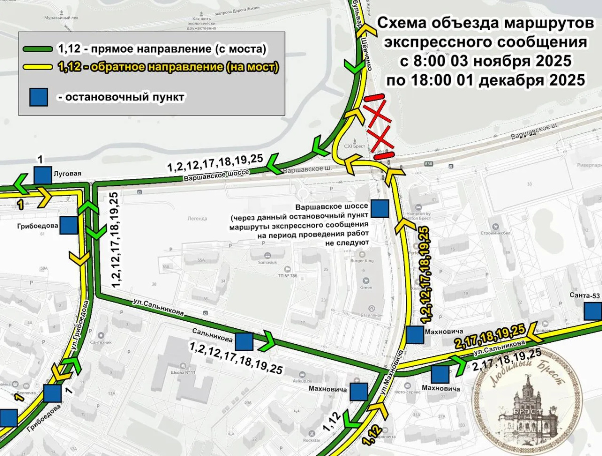 Движение автобусных маршрутов и маршрутов экспрессного сообщения организовано по временным схемам объезда.
