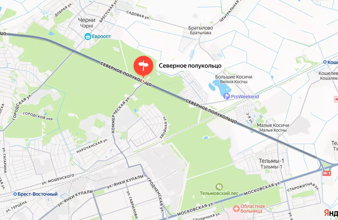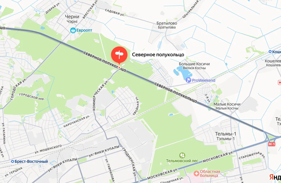 на пересечении автодороги М1/Е30 «Брест-Минск-гр.Российской Федерации»-ул.Коммерческая.