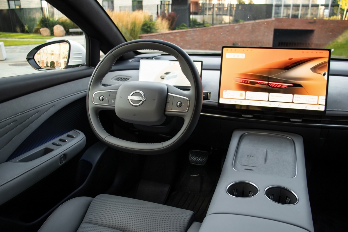 Интерьер Nissan N7 выполнен с акцентом на практичность и удобство. В отделке используются матовые материалы, которые меньше собирают отпечатки и дольше сохраняют аккуратный внешний вид. В передней части салона установлены 15,6-дюймовый экран мультимедийной системы и 10,25-дюймовая цифровая панель приборов, обеспечивающие удобное управление и наглядное отображение информации.