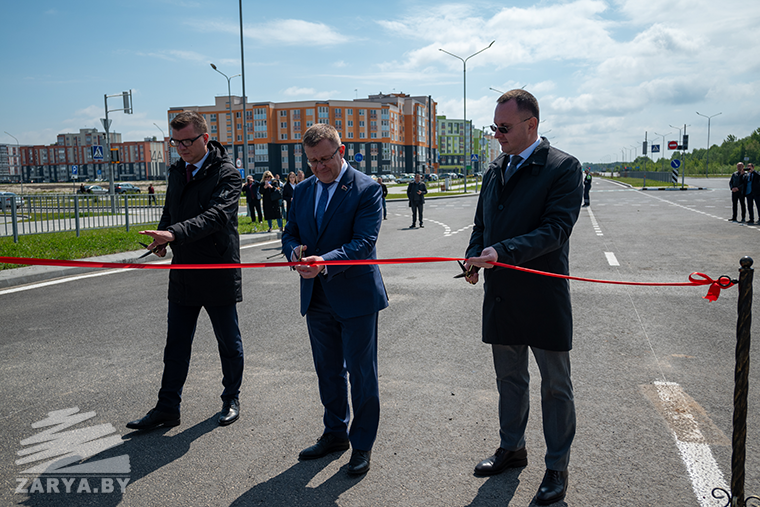 Символический пуск движения на благоустроенном участке дороги выполнили заместитель председателя Брестского облисполкома Вадим Ольшевский и мэр Бреста Сергей Лободинский, которые первыми проехали по нему, проверив качество покрытия.