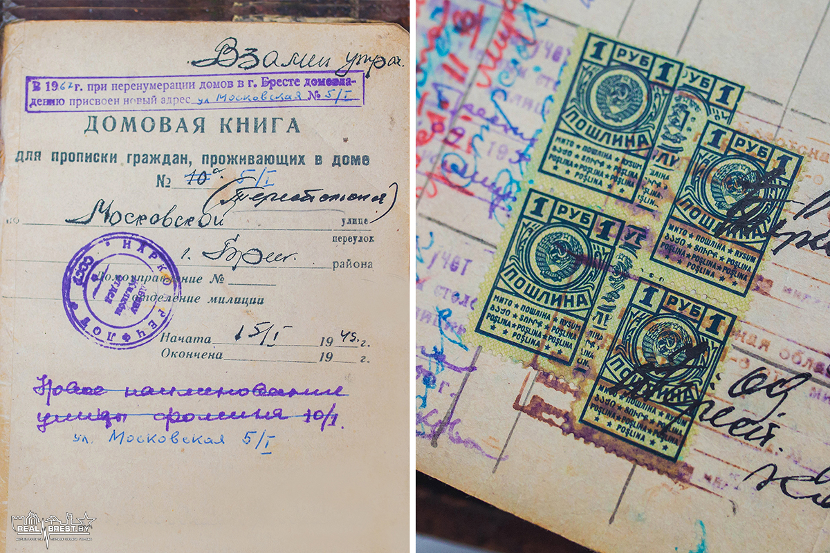 Сохранилась домовая книга от 1945 года, которая была выдана взамен утерянной. Что интересно, в ней указан первый адрес: улица Тереспольская, 10А. Потом домик числился по улице Московской, Фомина, а теперь по проспекту Машерова.