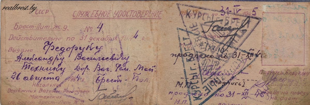 Над городом еще клубился дым пожаров, а на железнодорожном узле уже советского Бреста начались восстановительные работы. 2 августа в Брест прибыли первые эшелоны. Требовалось как можно быстрее открыть движение по железной дороге на запад. 10 августа 1944 года был полностью восстановлен для движения составов взорваный отступающими немцами мост через реку Западный Буг. Ввиду важности брестского транзитного узла в город прибывали свежие кадры железнодорожников.