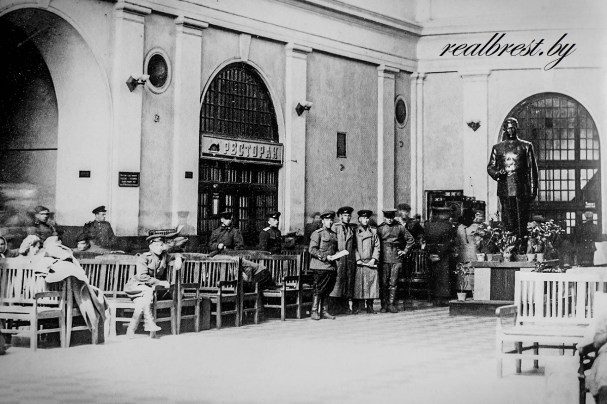 Организационно железнодорожная станция "Брест" подчинялась созданной в декабре 1939 года Брест-Литовской железной дороге. Вокзал Брест-Центральный не претерпевал особых изменений – как внешних, так и внутренних. В зале ожидания установили солидный памятник Сталину из темного мрамора. На стенах были развешаны портреты руководителей СССР. У парадного входа с Московского перрона, слева от дверей, над которым висели круглые часы, стоял белый гипсовый Ленин. Имелась проекционная установка, и по вечерам здесь бесплатно демонстрировались фильмы.