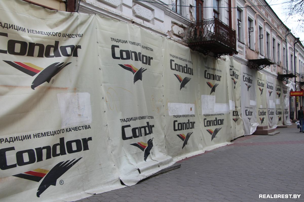 Новостройка в историческом центре Бреста возникла на месте двух домов №№ 54 и 56 по улице Карла Маркса, где осенью 2012 года их разобрали так, что оставили лишь фасадные стены с треугольными деревянными подпорками, чтобы те не рухнули. Летом 2013 года фасадных стен уже не было.