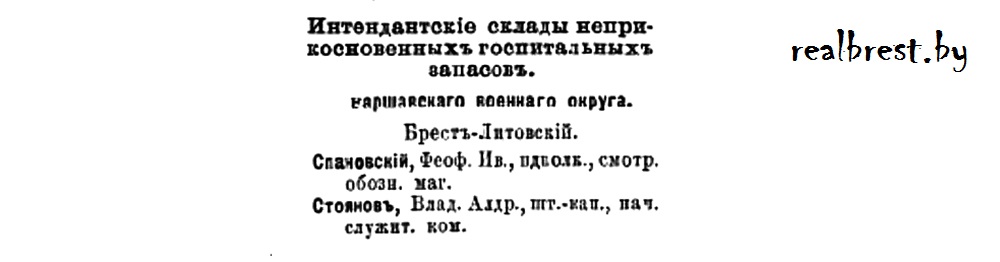 Интендантский городок, это место где осуществлялся не только отпуск всего необходимого для нужд крепости, окружного госпиталя, полевых госпиталей и гарнизона Брест-Литовска, но это еще и место где формировался фурштадт.