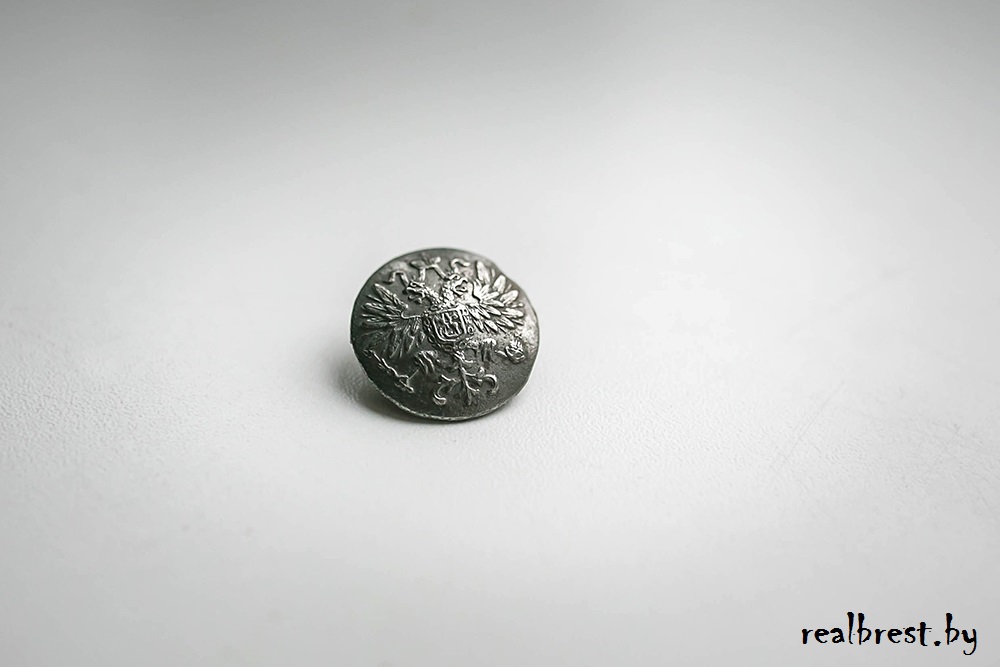 Оловянная пуговица с изображением государственного герба, найдена на территории интендантского городка.