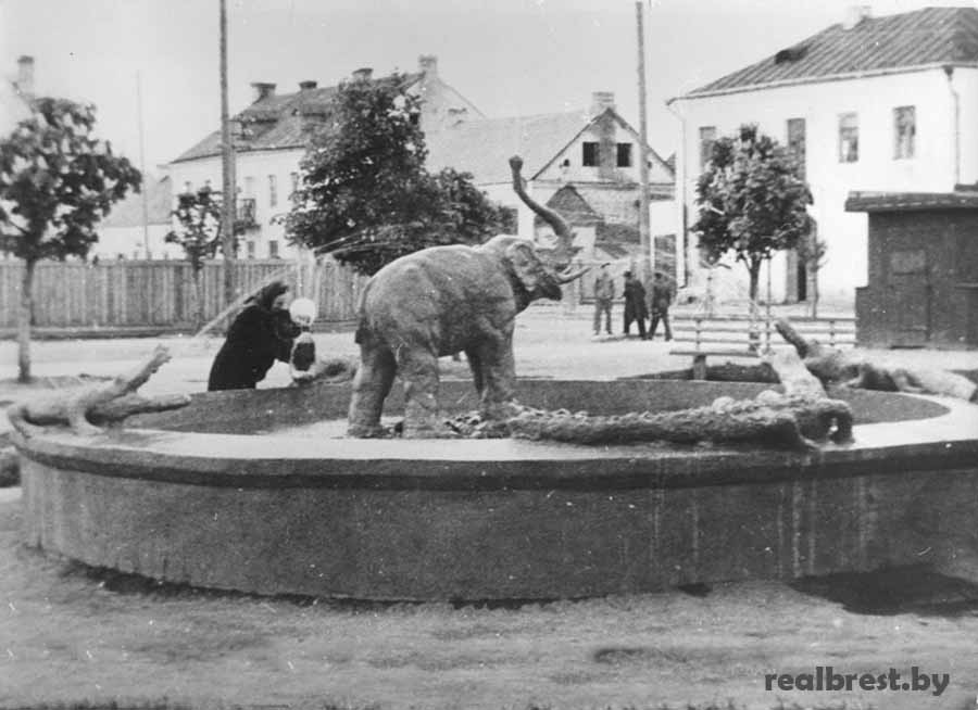 На бетонном цоколе были расположены 4 крокодила, из оскаленных пастей которых били струи воды. В центре фонтана, подняв кверху хобот, выбрасывал воду слон. Этот оригинальный фонтан, являвшийся украшением города, работал нечасто и просуществовал относительно недолго.