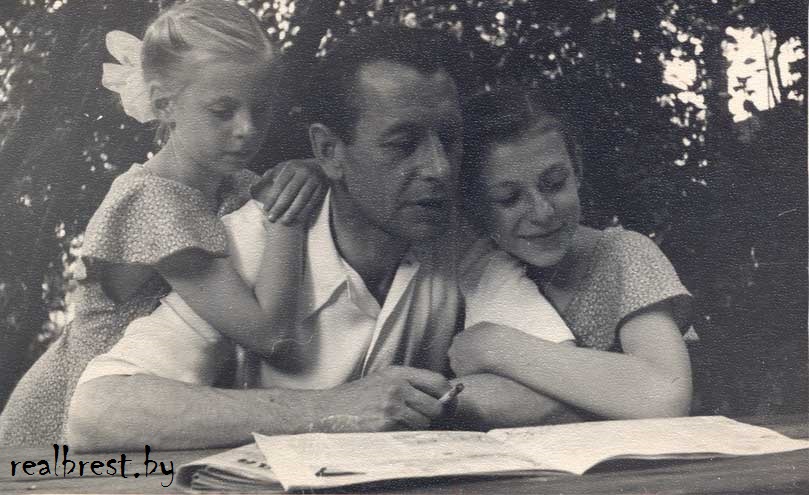 Пётр Машеров с дочерьми Еленой и Наташей. 1958 г.
