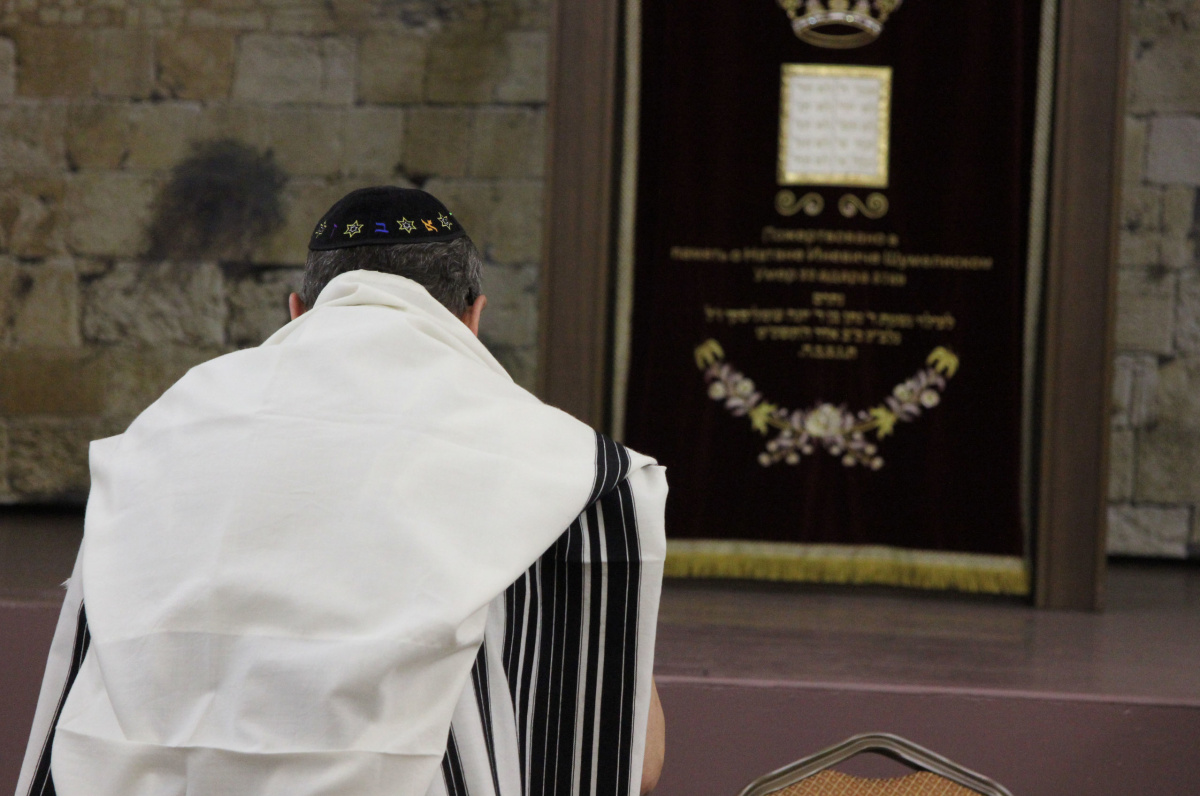 Во время молитвы мужчины обязательно покрывают голову и плечи – кипой и талитом