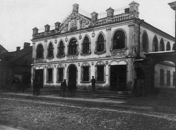 Так синагога выглядела в 1916 году. В центральной части правой боковой стены видны три стрельчатых окна – частично их можно увидеть на фасаде и сегодня