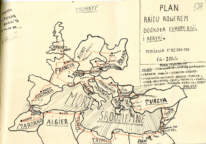 В 1933 году я совершил велопутешествие по Польше, посетил все крупные города и все крупные туристические достопримечательности (прилагаю мои фотографии из путешествия). Теперь я хочу предпринять туристическое путешествие велосипедом через Европу, Азию и Африку.