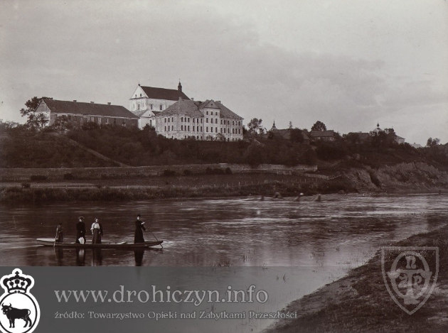 К сожалению, я не видала ни Буга, ни берега (а говорят, что на стороне Буга Дрогичин выглядит очень красиво и «urocze»), потому что наш автобус остановился на рынке. Ничего особенного Дрогичин не представляет. Маленькое такое местечко вроде наших Семятич, хотя костел там очень старый. Да низкие дома, а дальше и совсем деревенские. Кругом садики, зелень. Есть предание, что если к холмам, находящимся около Буга, приложить ухо, то будет слышен шум как бы погребенного города. Дрогичин местечко очень старое и историческое.
