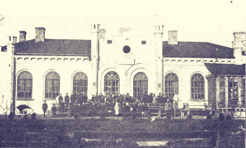 Школьный кинотеатр, открытый в 1925 году на месте кинотеатра железнодорожников. Предположительно здание первого брестского ЖД вокзала.
