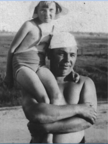 Михаил Шлыков с дочерью на берегу Мухавца, 30-е гг.